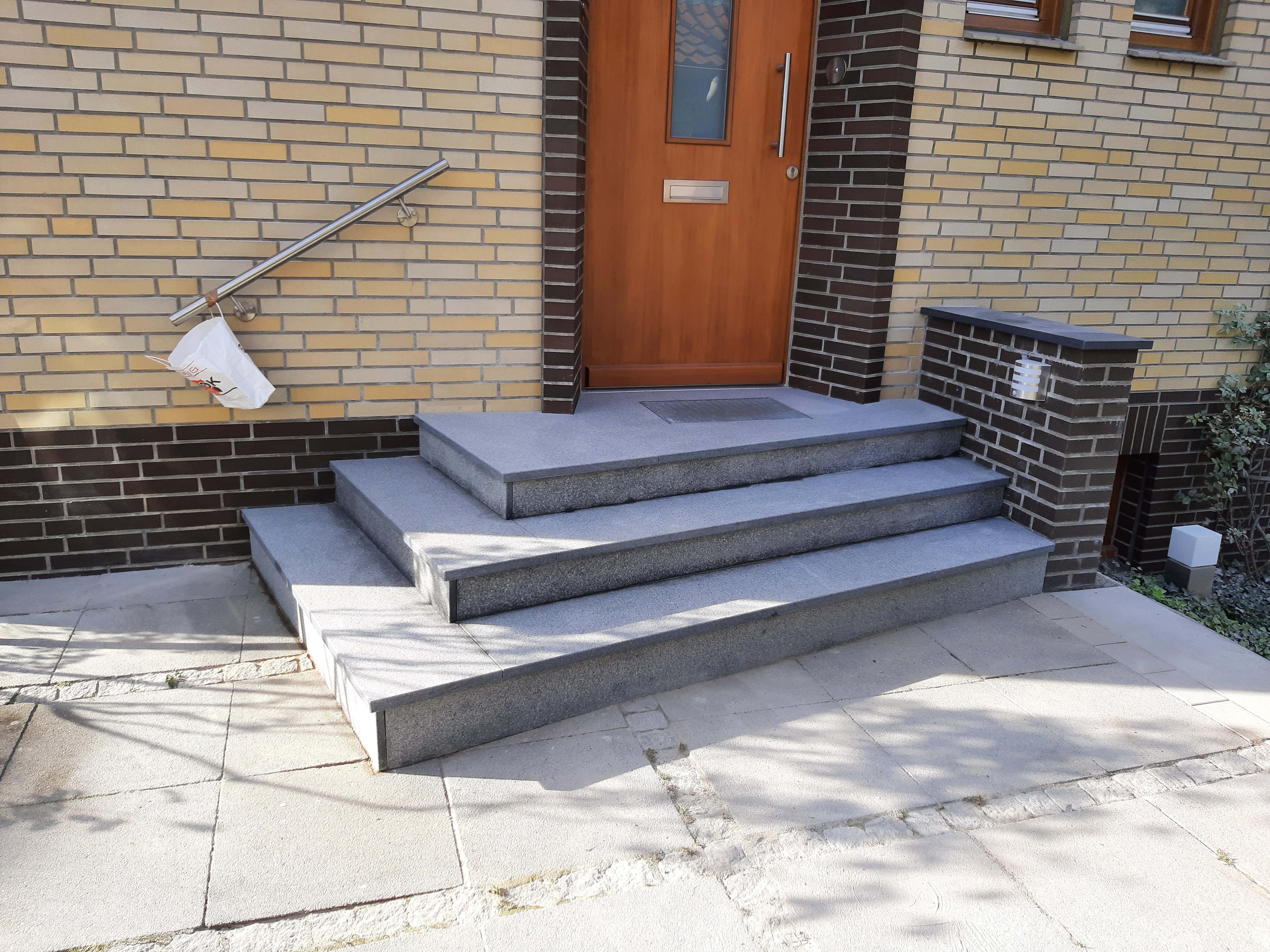 Ein repräsentativer Eingangsbereich wertet Ihr Zuhause auf. Wir gestalten Eingangstreppen und Außenbereiche mit hochwertigen Natursteinmaterialien und fachgerechter Ausführung.
